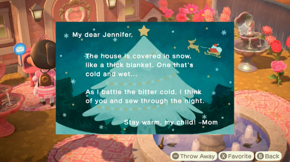 I'm so aware that this might sound super stupid but i keep getting sad about it and this is probably the only place that i has the potential for someone to understand, but i've basically been playing animal crossing (new horizons) for over a month now and i keep getting the "mom... Mom will occasionally write letters, in addition to one shortly after moving to town and another on mother's day, while dad writes only on father's day. New leaf, however, the father sends the player more letters, but not as often as mom. New horizons is one of the best nintendo switch games and has hundreds of villagers for you to meet, each with distinct personalities, catchphrases, and style.if you want to become great friends with them, one of the quickest ways to their heart is giving them presents. Help with a item help:. As we mentioned, mom's gifts are unique items that vary every month, and many of them are customizable.